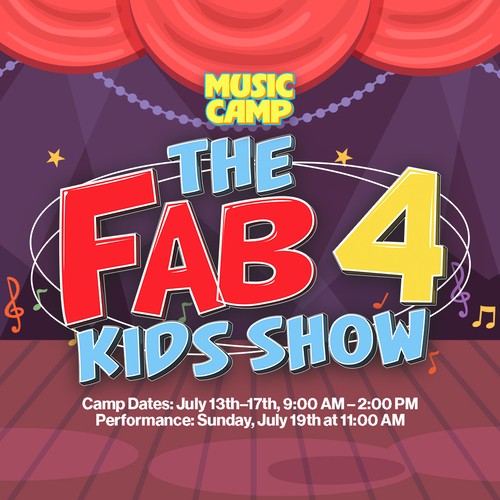 Music Camp 2026 is a fun and exciting week for rising 2nd through 6th graders, taking place July 13–17 from 9:00 AM to 2:00 PM each day. Throughout the week, kids will enjoy music, dance, art, gymtime, snacktime, and learning about God as they prepare for our production of The Fab 4 Kids Show. The cost is $30 per camper.
